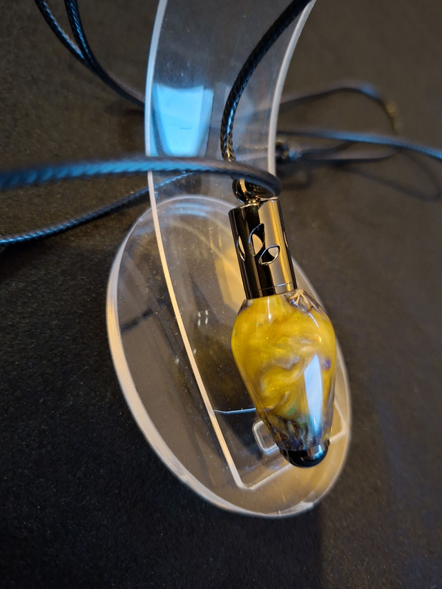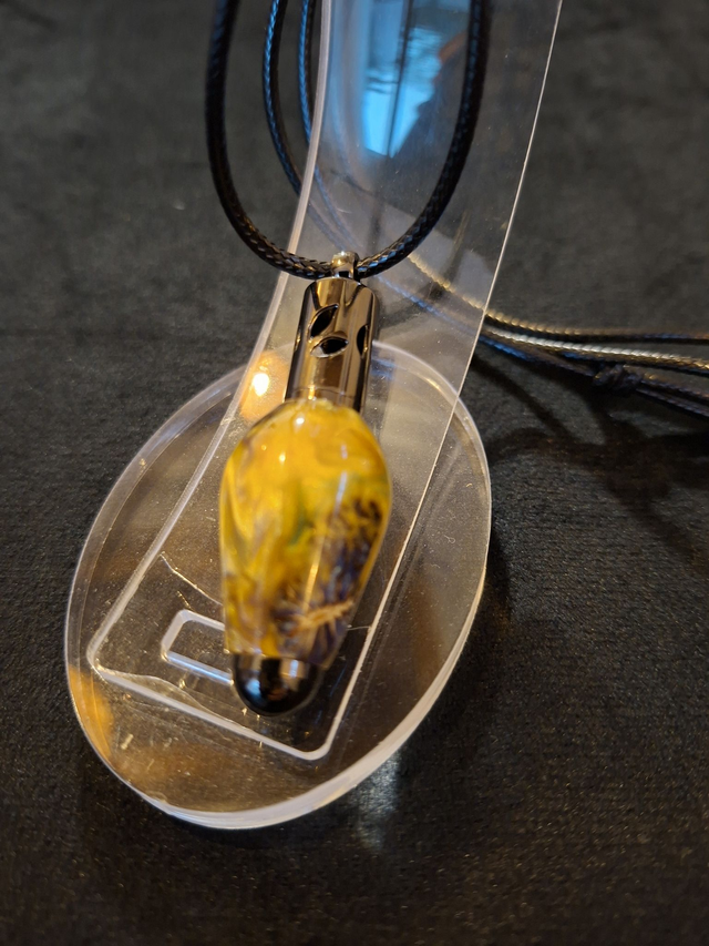 Pendentif aromathérapie gun métal en résine dorée et cônes d'aulne