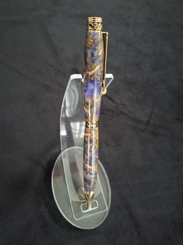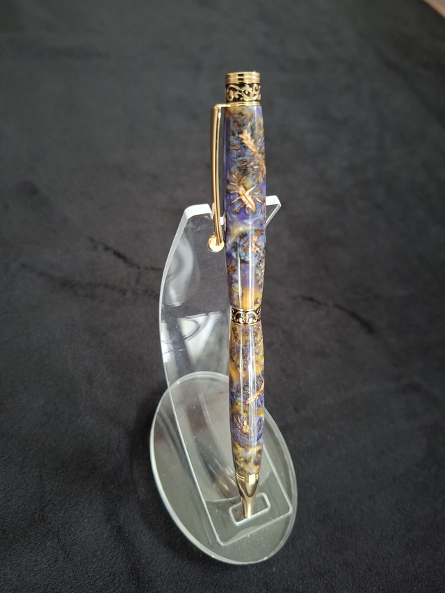 Stylo Arabesque Gold en résine violette, or et cônes d'aulne