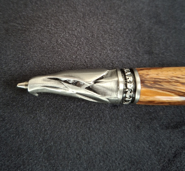 La pointe représente une tête d'aigle, l'arrière un moteur et la barrette l'échappement de la bête.