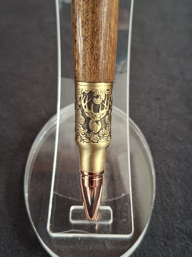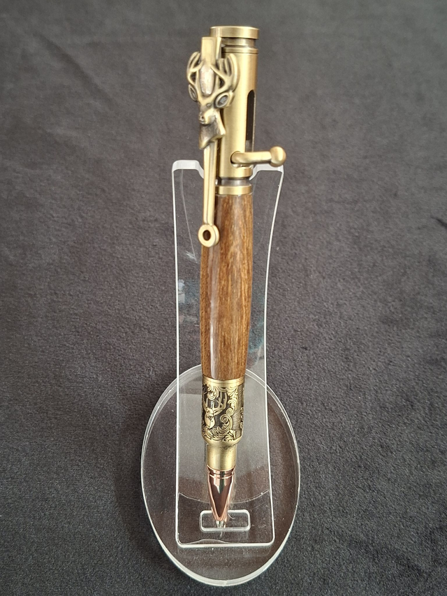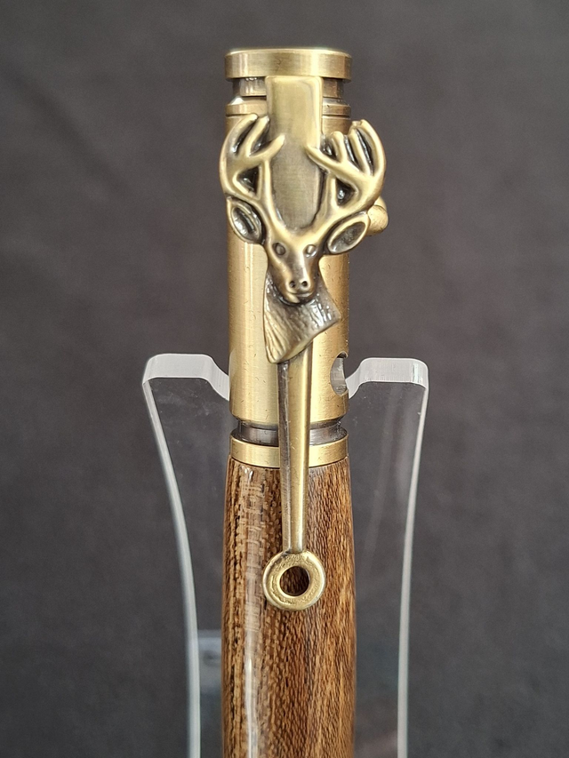 Ce stylo, sur le thème de la chasse, utilise un mécanisme de type carabine : il faut actionner un levier pour sortir la mine.