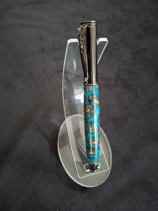 Stylo Piccolo bronze en résine bleue et cônes d'aulne